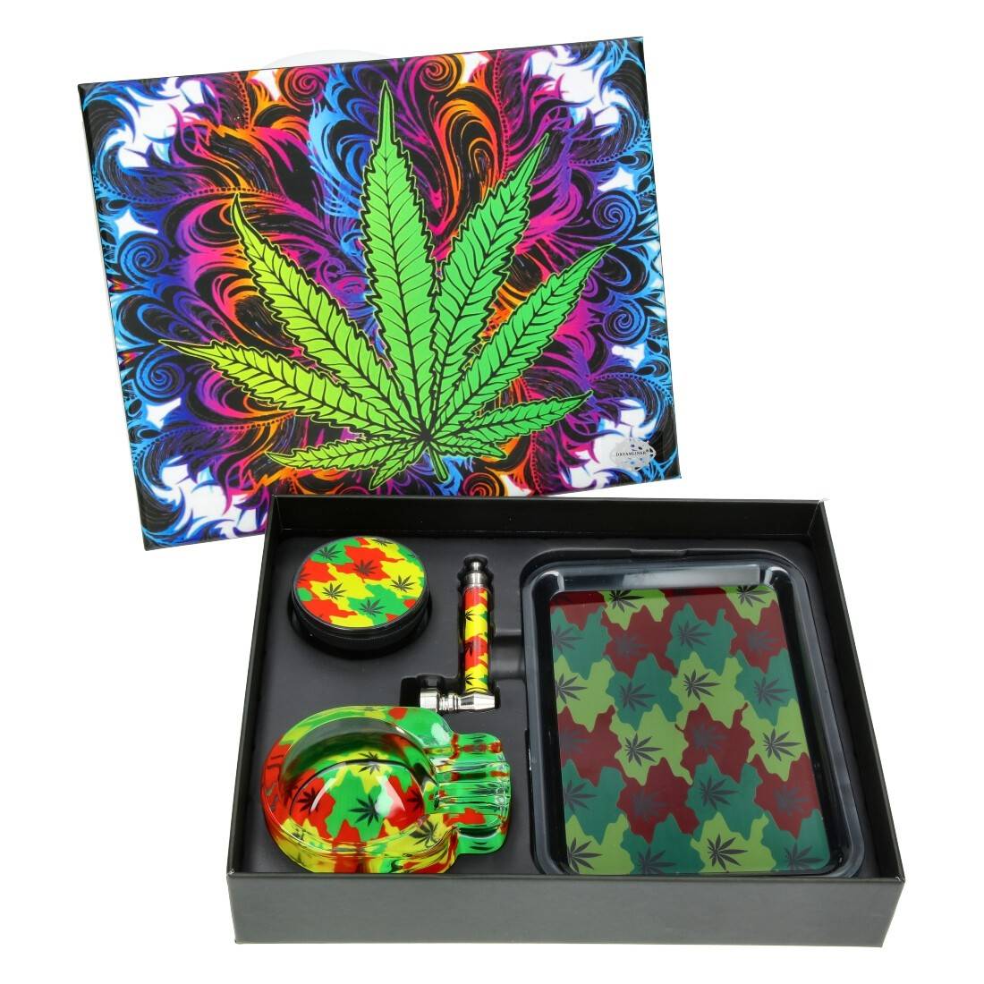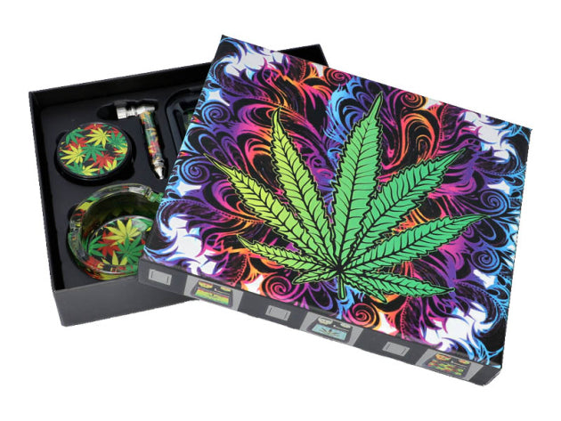 The Leaf 4-Part Gift Box is the ultimate starter pack for any smoker. With bold leaf designs and vibrant colors, this all-in-one set includes everything you need for your next session – all packed in a stylish gift box. Perfect as a gift or personal treat!